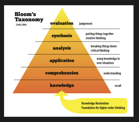 Though there are six levels, we will mainly focus on the base two: knowledge and comprehension.